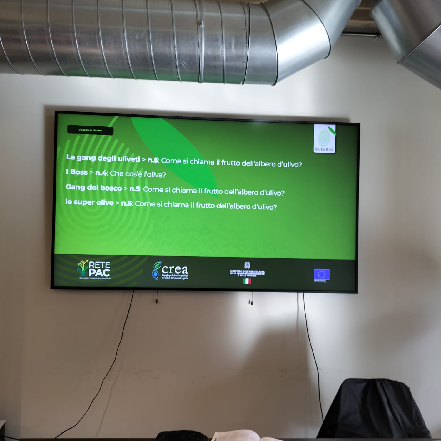 Nello stesso contesto sarà presente anche il Trivia Game di Oleario: un gioco a quiz interattivo, semplice e divertente, che vi porterà alla scoperta di concetti e conoscenze specifiche sull’olio e ciò che vi ruota attorno. Preparatevi a domande che abbracciano molti aspetti diversi, tutti collegati alla filiera olivicola e olearia.